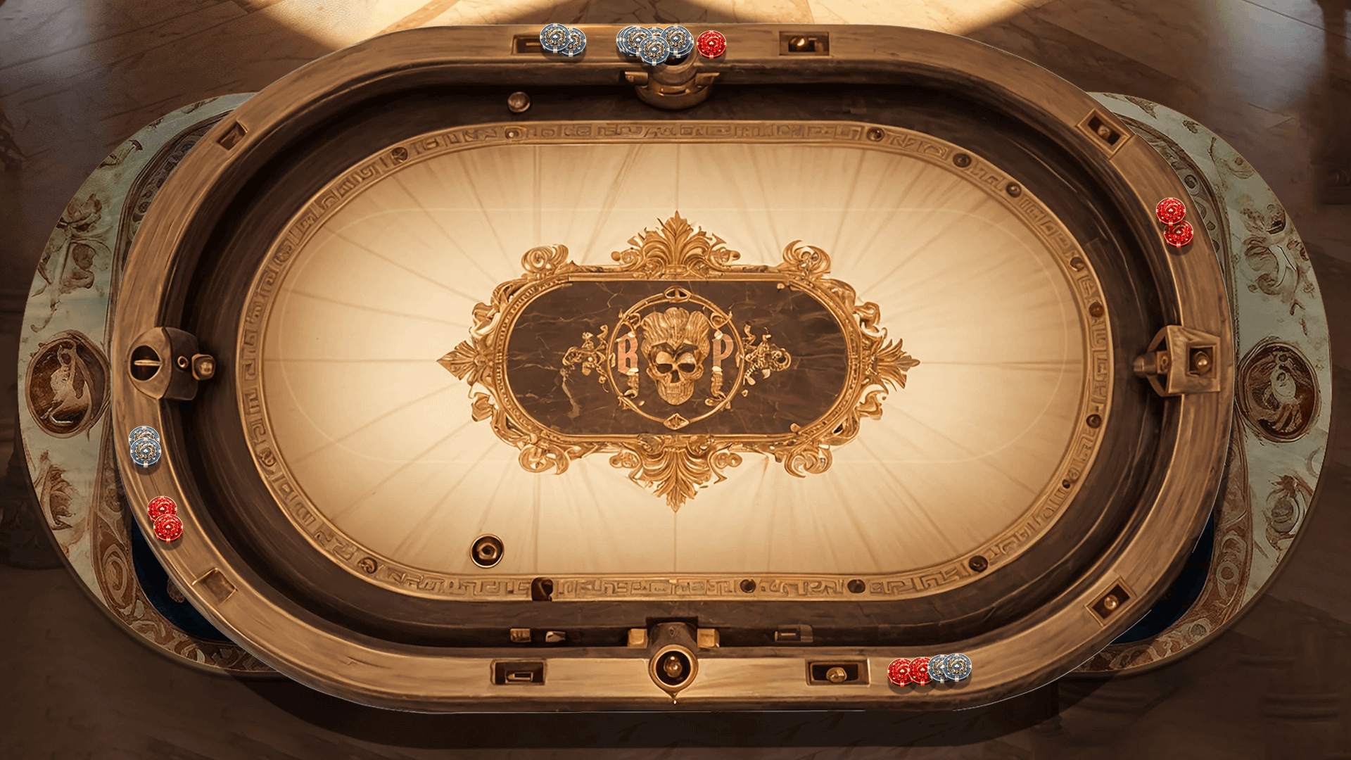 This deck of cards is steeped in Old West legends. Its unique customization on aged paper brings to mind the dusty halls of the time. But what makes it special are the bloodstains and gunshot marks that adorn many of the cards. It was discovered in the pocket of a notorious bandit known as "The Black Ace". Legend has it that this deck was present in many of his infamous robberies and shootouts, becoming a symbol of his skill and daring. When holding this deck in your hands, you can't help but feel the thrill of the Wild West, imagining the stories it could tell of lawlessness, danger, and adventure.