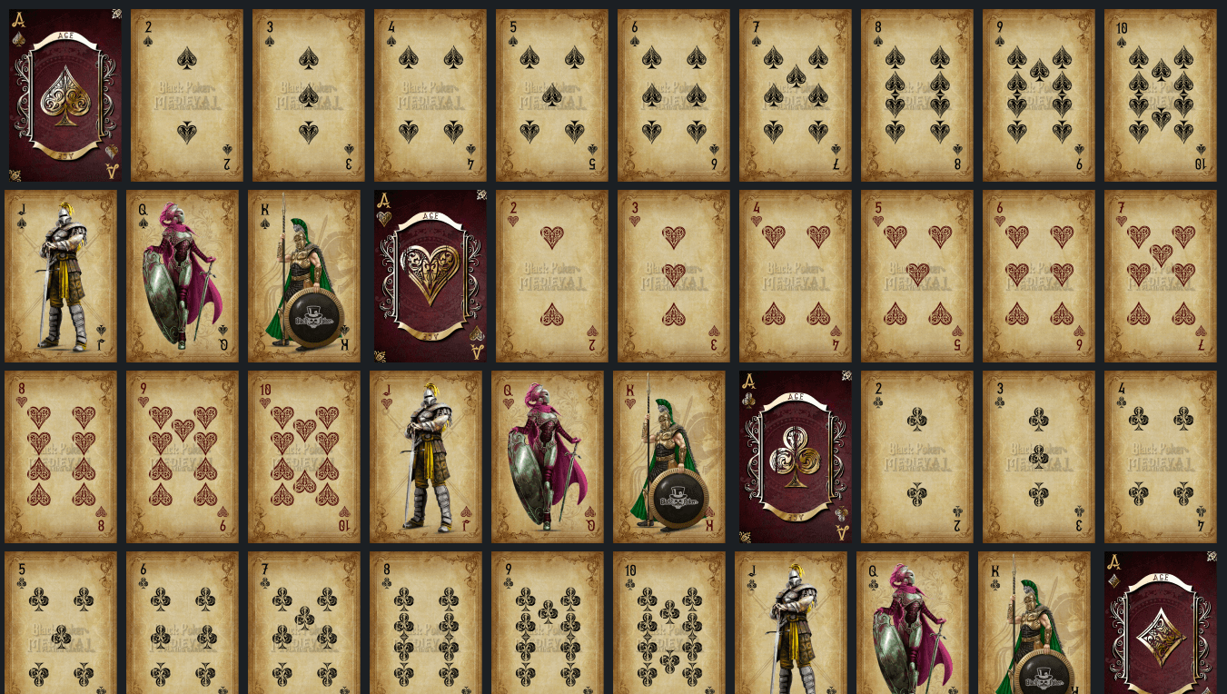 Embark on a captivating journey through time with this medieval-style custom deck. Each card is a portal to a bygone era, showcasing its rich history, elements and colors. From knights and castles to mythical creatures. The attention to detail in the illustrations and the choice of rustic colors evoke the essence of medieval times. Let this deck inspire your imagination as you engage in exciting card games or simply marvel at its historical significance. It is a treasure for collectors who celebrate the legacy of an extraordinary era.
